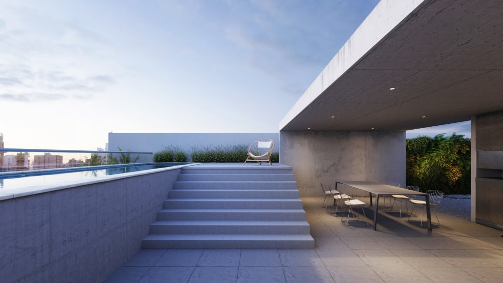El edificio contará con amenities de categoría, ubicados en la terraza, la cual contará con pileta, solárium, SUM y parrilla. Además, se desarrollarán dos niveles de cocheras, una cubierta y otra semicubierta.